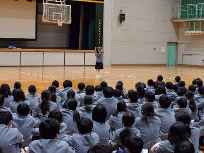生徒会役員のあいさつに続いて、各部活動の紹介が行われていました。