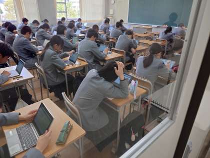 本日の午後と明日の午前中、3年生は全国学力・学習状況調査に取り組みます。本日は、学習用端末を活用した生徒質問紙と理科。明日は、国語と数学に取り組むこととなります。