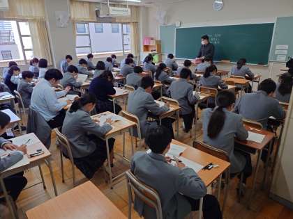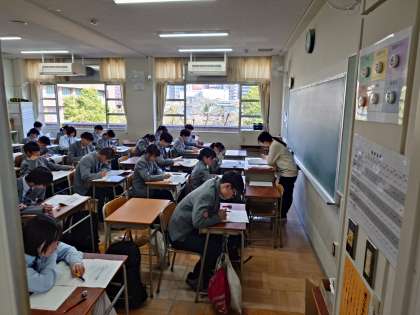 3年生は、昨日の学習用端末を活用した調査に引き続き、本日1・2限目に国語と数学の学力調査に取り組んでいます。真剣に問題に向き合う表情がうかがえます。頑張ってくださいね!
