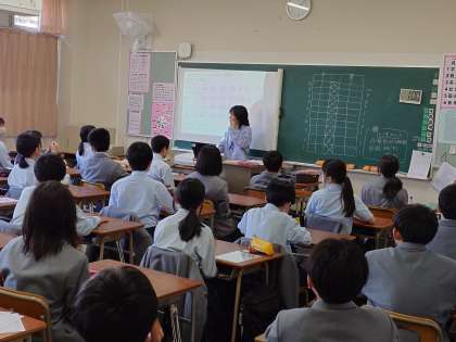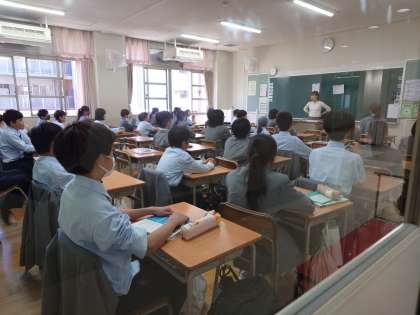 部屋割り、バス座席、学級目標決定に続き、1日目の晩に行われる室内レクリエーションの種目決めを行いました。指示を受けたあとは、生徒たちで話し合って取り組みを進めました。