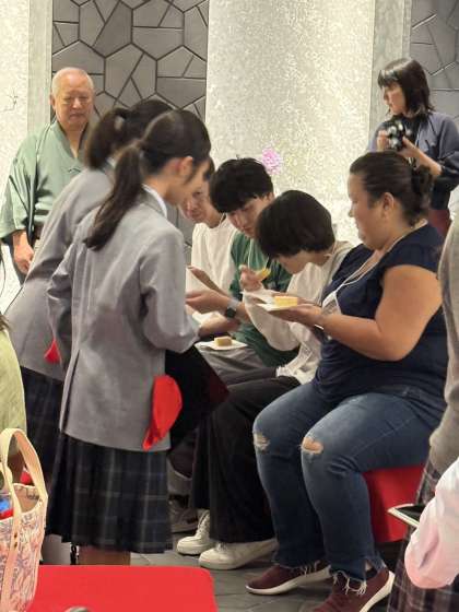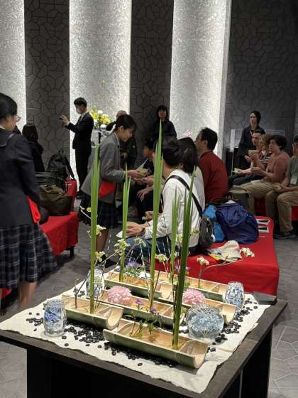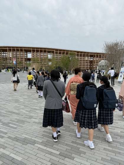 4月20日(日)に茶華道部は、大阪・関西万博の関西パビリオンにおいて、呈茶のお運びをさせて頂きました。外国人の方もたくさん来場されており、日本文化を英語で伝える良い体験をすることもできました。