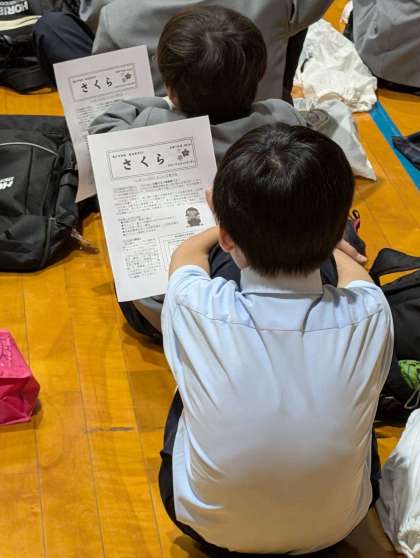 本校でも、校長先生よりいじめは重大な人権侵害であり、犯罪にもなりうる許されない行為であるとのお話がありました。集団生活を送る中では、何気ない行為が相手を傷つけてしまうこともあります。しっかりとアンテナをはり、いじめを見逃さず、許さない感覚を身につけてください。