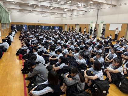 帰校式が行われました。万博のテーマ「いのち輝く未来社会のデザイン」を感じることはできたでしょうか。また、堀中生として規律ある行動をできたでしょうか。