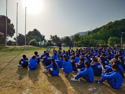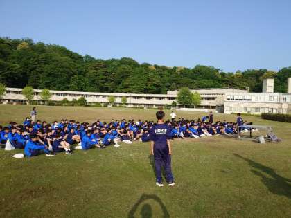 6時56分に全員が集合しました。しおりで示された朝の集いは7時開始、昨日班長に伝えられたのは5分前集合。これを成功とするのか、失敗として協力や努力が足らなかったと考えるかで、今後の行動につながるとの話がありました。成長はしていますが、より高い目標を掲げて取り組むことが大切です。
