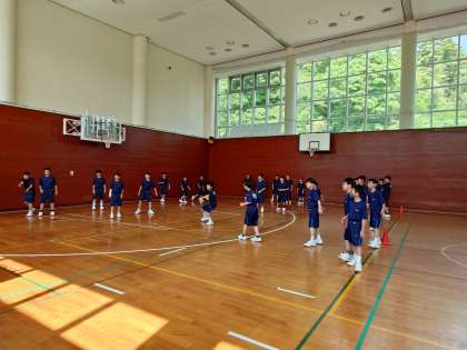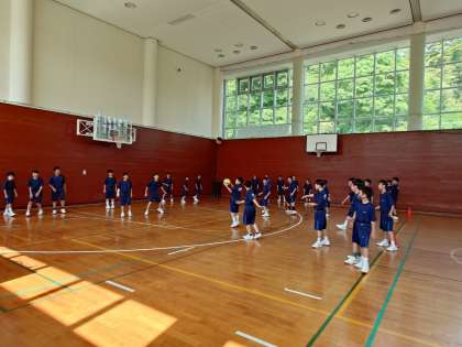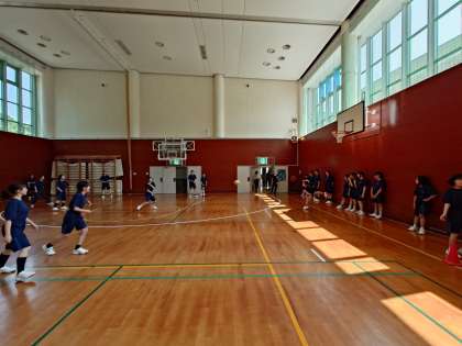 カッター体験の次は体育館でのドッチボールです。大盛りあがりで、歓声が体育館中に響き渡っています。