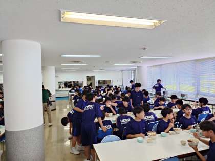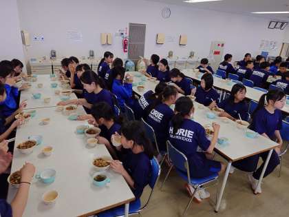 最後の昼食は、焼き肉丼です。午前中懸命に動いたので、お腹が減っていたのでしょう。おかわりをしている生徒もたくさんいました。食堂の方に感謝の気持ちを込めた大きな「ごちそうさまでした」の声が響きました。