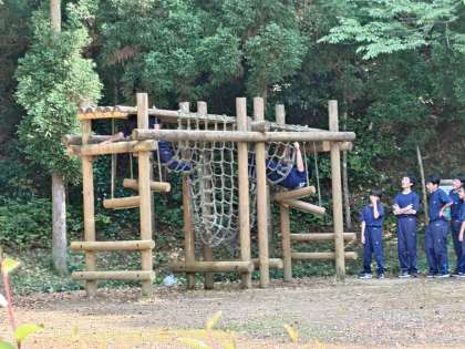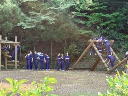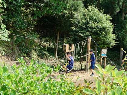 暑さに負けず、アスレチックで身体を動かしています。30℃ほどあった気温も少し下がりつつあります。海辺からの風が、気持ち良く感じられます。