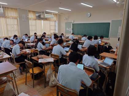 2年生は、校外学習の事後指導としてSDGsの調べ学習を、3年生は修学旅行に向けた新聞作りを学習用端末を使って行いました。