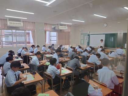 本日6限目は、全学年学活の時間です。1年生は、先日行われた中間テストの振り返りと、6月4日に校外学習で行く大阪・関西万博に向けて取り組みが、行われました。