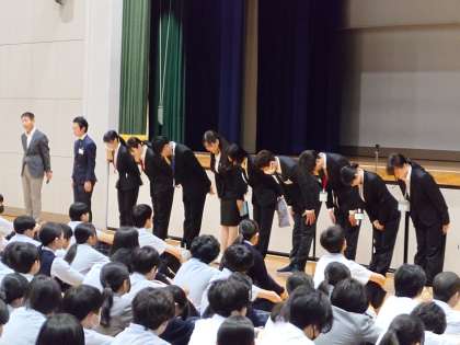 本日より10名の教育実習生がきます。将来の先生です。一緒にいい学校生活をすすめていきましょう。