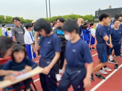 長居公園を歩き、ヤンマーフィールド長居に到着しました。準備体操をしたらいよいよ競技のスタートとなります。
