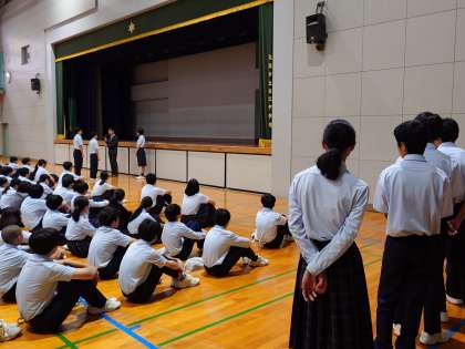 そのあと校長先生より、感謝の気持ちを伝えることの大切さについてお話がありました。他人から親切な行為やお願いしたことをしてもらえば、当然「ありがとう」との言葉を言います。しかし、身近な家族などへはどうでしょうか。誰であっても言葉で感謝の気持ちを伝えてください。