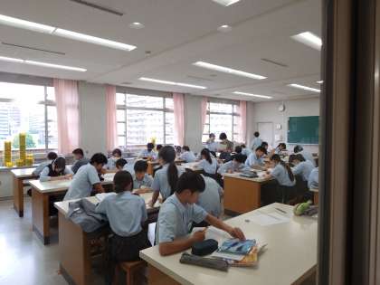 梅雨に入り、雨の日が続いています。湿度が高くジメジメした気候となっていますが、生徒たちは1週間後にテストも控えていますので、真剣に授業に取り組む様子が見られます。