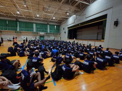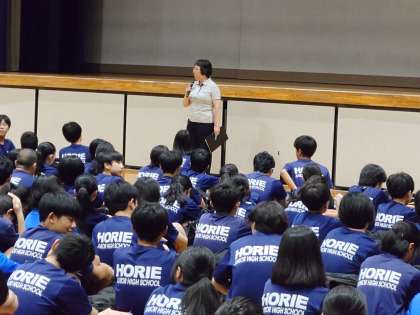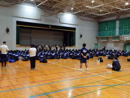 修学旅行の出発式です。昨日までの雨は何とかあがりましたが、四国は少し天候は良くないようです。残念ながら、予定していたプログラムを一部変更せざるをえないところもあります。