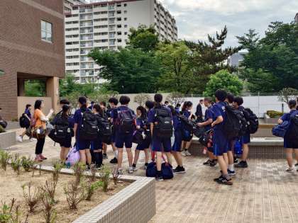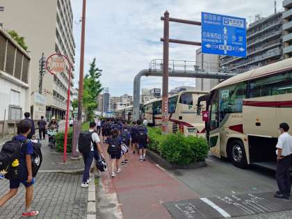 いよいよ出発です。体育館からバスに乗り込みます。午前中の体験活動別にわかれての出発となります。
