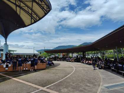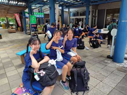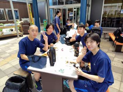 昼食をいただいてます。朝が早かったのでみんな腹ペコです。談笑しながら、美味しくいただいてます。