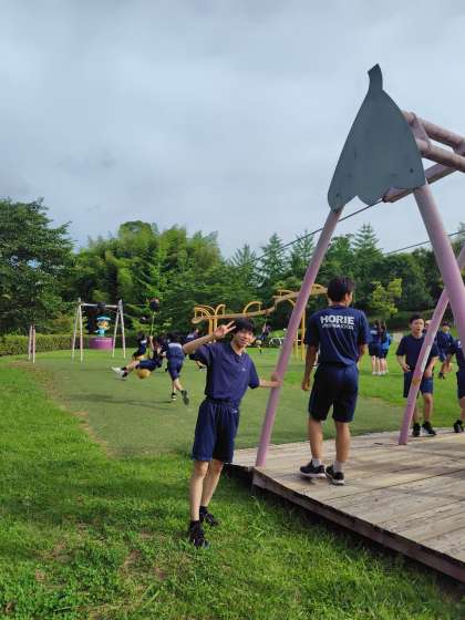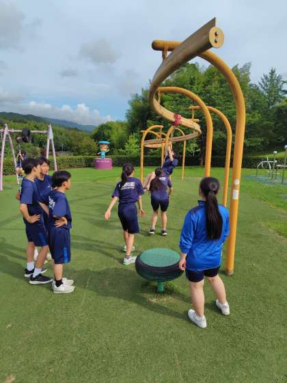 アスレチックのようすです。暑さも何のその。とても楽しんでいます。
