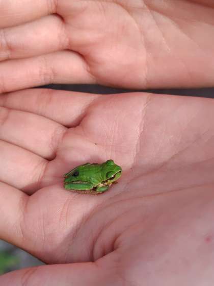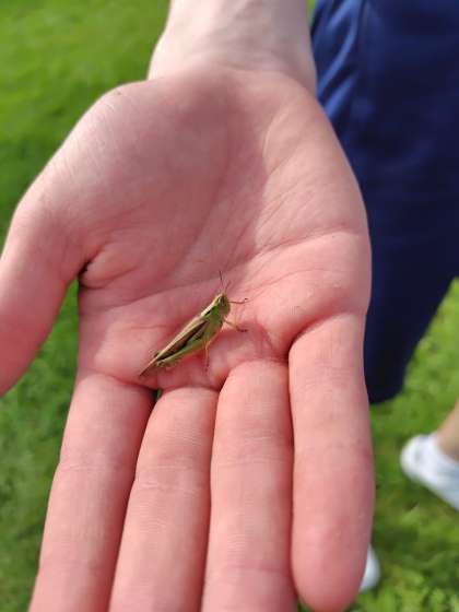 アスレチックの場所では、カエル、バッタ、トンボと自然がいっぱい。心が和みます。