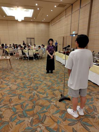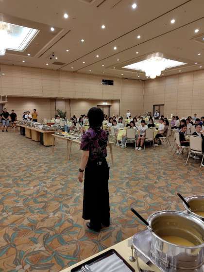 入館式のようすです。生徒代表のあいさつがあり、その後、ホテルのスタッフからご挨拶がありました。