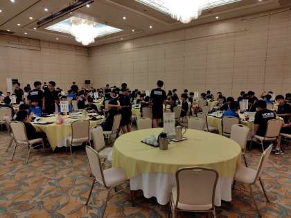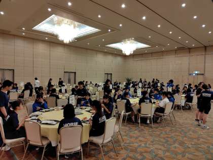 今日の活動にそなえて、しっかり食べましょう。朝から笑顔あふれる食事会場でした。