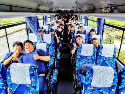 今日も子どもたちは元気いっぱい。バスの中には、笑顔と元気な声があふれています。