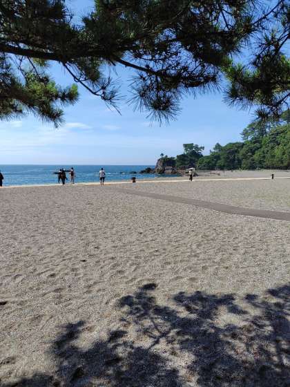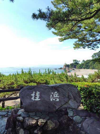 桂浜に到着しました。青い海、青い空。潮風が気持ちよく感じます。
