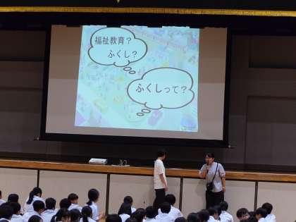 本日1年生は、ゲストティーチャーを招いて「福祉教育」を行いました。