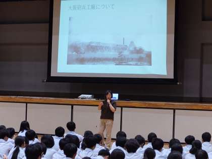 第二次世界大戦を終えて、今年80年をむかえます。本日は、学年主任の加藤先生から戦争、そして平和について考える授業が行われました。
