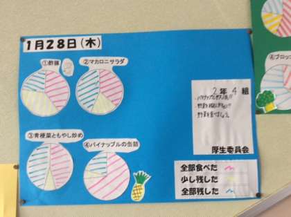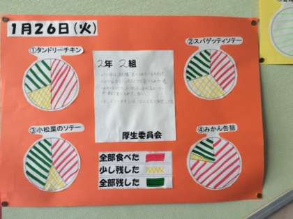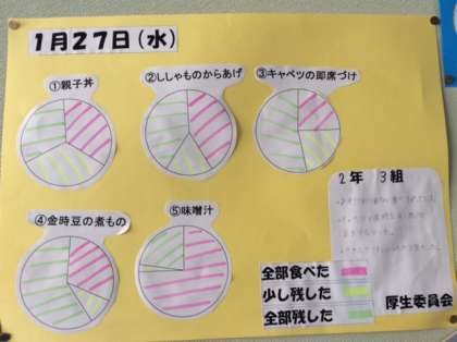 今年1月下旬の一週間の中学校給食の残食をアンケートしたものを厚生委員会でまとめてくれました。写真は2年生分です。