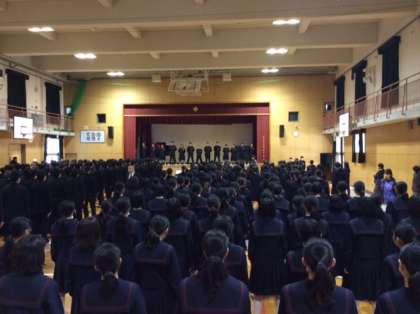 来週8日(火)に予定されています「3年生を送る会」の在校生の合同練習がありました。11日(金)の卒業式に在校生全員が参加できないため、全校生徒が一堂に会して行われる最後の行事になります。心を込めて、「送る会」に臨む準備をしています。
