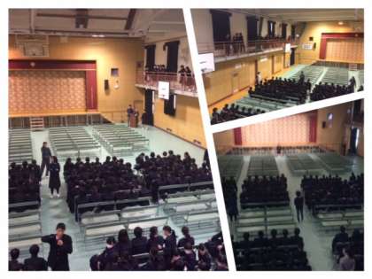 明日、いよいよ「3年生を送る会」の本番です。1,2年生が全員集まり最後の練習をしました。おごそかで、和やかな送る会ができるように頑張ります。