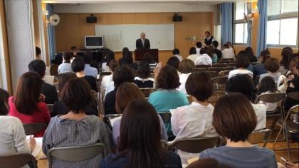 土曜授業(2)の最後はPTA委員総会と常置委員会を行いました。全体の委員会では、西川会長のあいさつ、平成28年度の年間行事計画案、予算案について連絡、学校長あいさつがあり、その後は、各委員会に分かれて、今後1年間の活動について話し合われました。今年も保護者の方々のご協力をいただき、PTA活動にふるってご参加ください。よろしくお願いいたします。