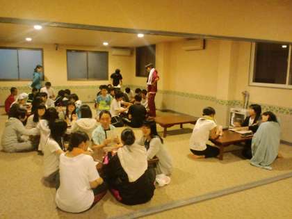 昨晩は就寝前に反省会をしました。早朝から活動してきて、1日を振り返ってます。「明日も事故なく楽しい活動ができるように協力していこう」とみんなで確認しました。