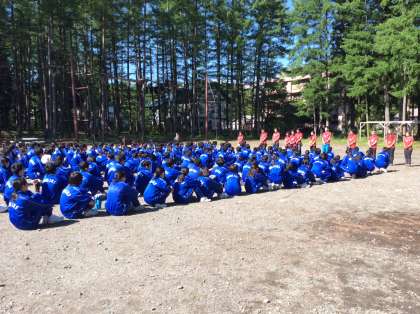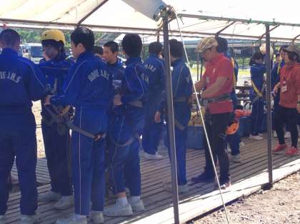 朝食後、EXアドベンチャー会場に移動。地上10mのハイエレメントとクラスの仲間で力を合わせるローエレメントに挑戦。