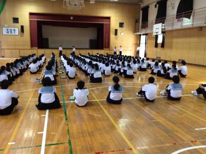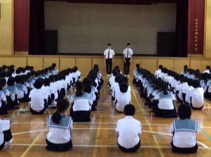 6月1日から夏服への完全更衣となりました。定例の一年学年集会が行われましたが、全員が夏服で、今週月曜日から来ています教育実習の先生の話を聞きました。
