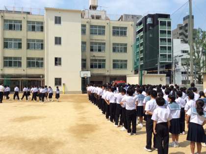 消防署の方からのお話と校長先生からのお話の後は、津波警報が発令された場合を想定した訓練も行いました。30年以内に起こる確率が高いと言われ、いつ起こるかわからない「東南海地震」に備えて、この訓練を機会に防災の意識を高めましょう。