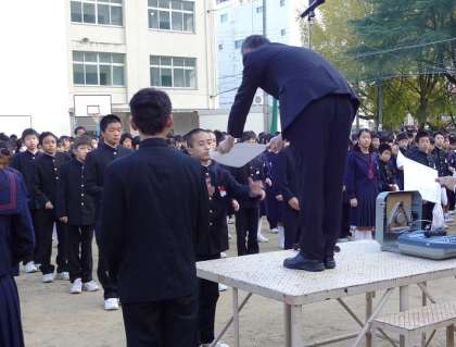 ◎「読書感想文コンクール」で2人が、「学校放送コンテスト」で1人が賞状を受け取りました。