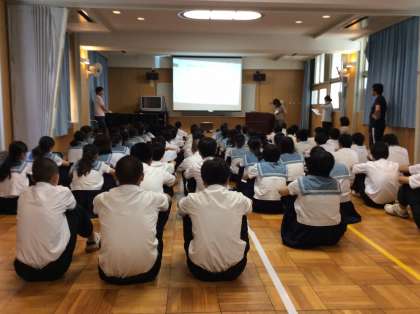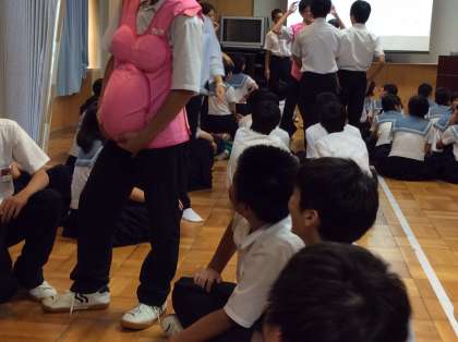 7月1日(金)5,6限、3年生は家庭科の授業として、体験から学ぶ「命の大切さ」として、西区保健福祉センターの保健師さんから授業を受けました。学校元気アップ事業の支援員さんにもご協力いただき、妊婦体験を行いました。