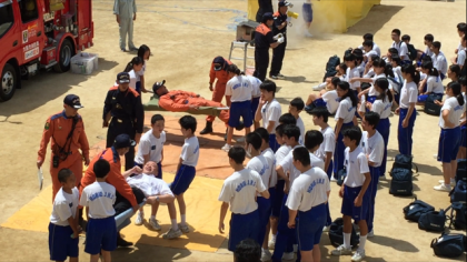 「心臓マッサージ」「担架による救出搬送訓練」
