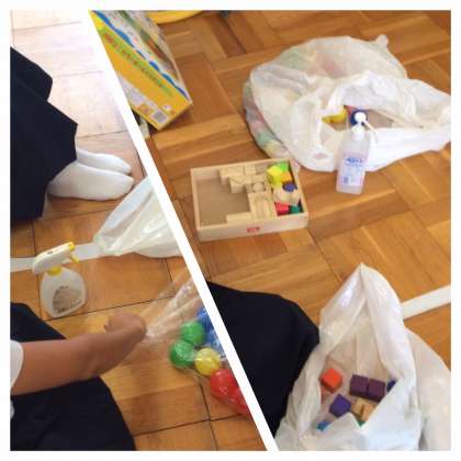 今年もバルーンアートで飾り付けをしています。おもちゃは全て消毒もしました。さてさてどんな遊び場所になっているか、明日のピヨピヨクラブが楽しみです。