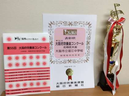 7月30日(土)「第55回 大阪府吹奏楽コンクール」(中学校・高等学校の部地区予選)北地区大会が大東市立総合文化センターで行われ、本校吹奏楽部は平素の練習の成果を発揮し、「金賞」を受賞することができました。