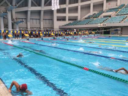 8月10日から始まる大阪市の水泳大会に出場予定の1年生を中心に、大阪プールで合同練習会が行われました。特に、飛び込みを中心に二時間しっかり練習しました。