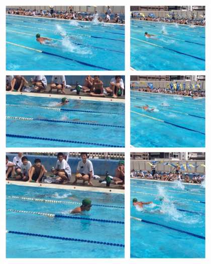 登校時間のころから降り始め、開始予定時刻には大降りになりました。雷もなり始めたので、体育館で開会式までしたものの、安全を考えて、結局二時間ほど遅れて開始。応援も大盛り上がりで、クラスの仲間への声援がプール中に鳴り響いていました。すべてのプログラムを行い、初めての水泳大会が終了しました。係りの生徒の動きがてきぱきとしていて、遅れて開始したにもかかわらず、スムーズに終了できました。ご苦労さんでした。終盤には、水泳大会を楽しんでいる皆さんに太陽も顔を出してくれました。学級対抗の結果は、優勝が2組、準優勝が1組でした。