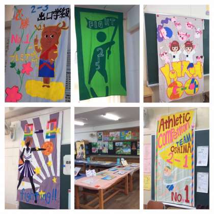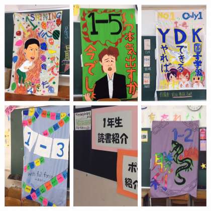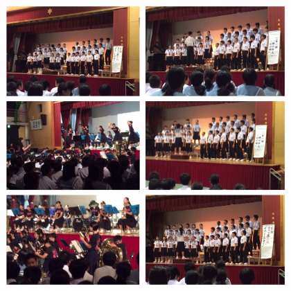 各クラスの作品展示では、体育大会で使用する学級旗の展示が行われていました。個性あるデザインで目を引いていました。体育大会で、どの学級旗が優秀なデザインと認められるのでしょうか?楽しみです。そして、午後の舞台発表一番目は、吹奏楽部の演奏でした。楽しい演奏を聞かせてもらいました。