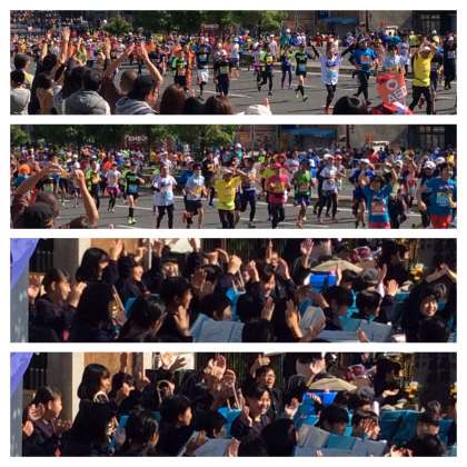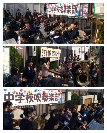 今年も、大阪マラソン応援演奏を行いました。今年は、日吉小学校ブラスバンドとの合同演奏。元気な小学生に負けじと一生懸命応援演奏しました。昨年と同じですが、応援している小中学生に、元気をくれるランナーの人が多いのに驚きます。今年も幸町千葉連合会長様をはじめ、幸町の皆さん、PTA・保護者の皆さまにお世話になりました。ありがとうございます。