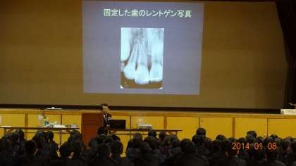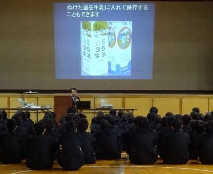 本日、外部から講師をお招きして、「歯と口の健康教室」を実施しました。(1年生)