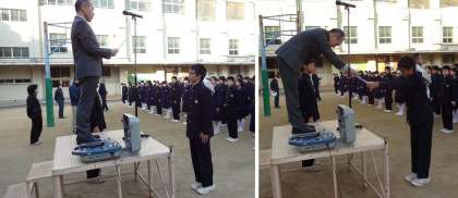 北村先生からは、朝のあいさつや、あいさつするときの態度などについてお話がありました。