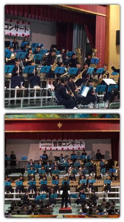 12月3日(土)の土曜授業の後、午後2時から日吉小学校・堀江小学校・堀江中学校の3校で、合同音楽コンサートを行いました。