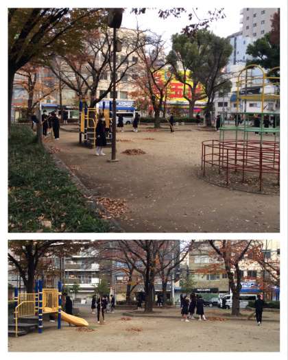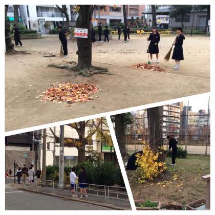12月6日(火)より9日(金)の4日間、朝7:50〜8:10の時間帯に、生徒会が主催として堀江グランドのボランティア清掃を行っています。季節的に落ち葉が大量にあり、今日も多くの生徒が自ら参加して集めてくれていました。