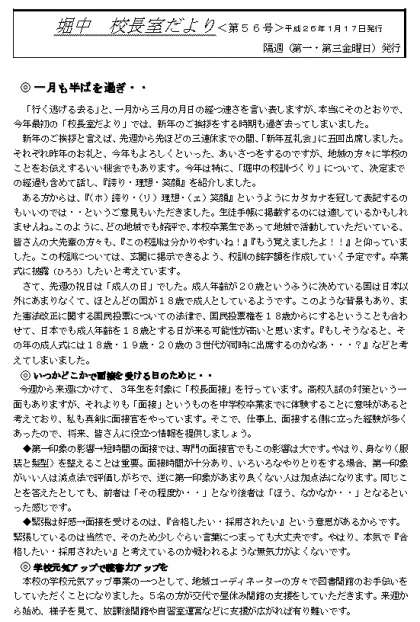 校長室だより(1月17日)